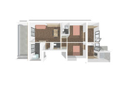 Reabilitação de apartamento na Rua do Telhal, em Lisboa. O apartamento, com uma excelente localização, apresenta, na situação original, uma situação incomum, com o acesso ao terraço feito por intermédio dos quartos e a zona social (cozinha e sala) virados para as traseiras. O desafio deste projecto foi inverter a situação, reposicionar as funções da casa, e, ao mesmo tempo, fazer um upgrade das soluções espaciais.